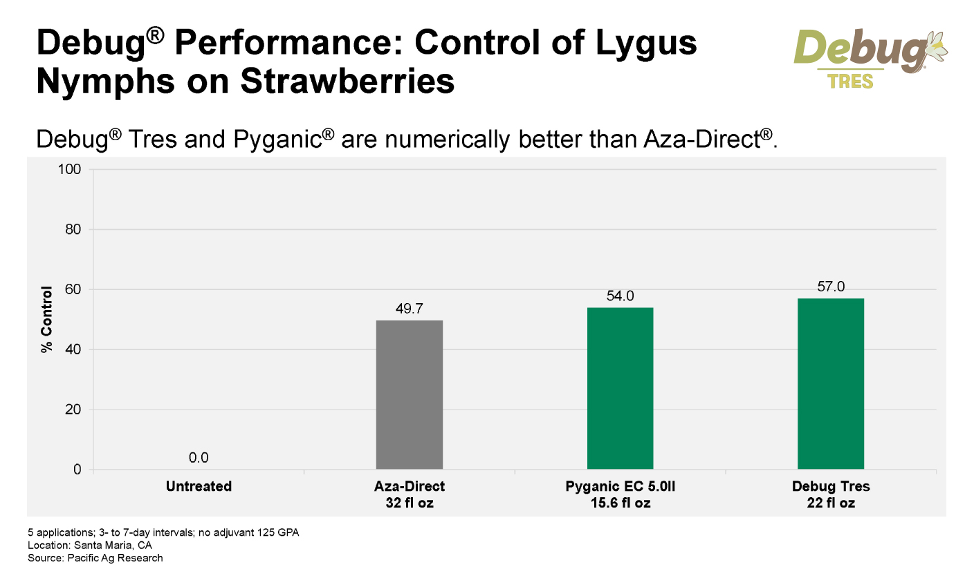 Debug is a registered trademark of McLaughlin Gormley King Company. Debug® Tres is NOP compliant and OMRI Listed under MGK for organic production.